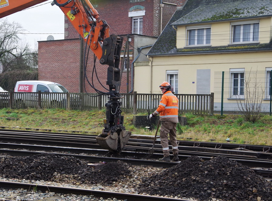 entre Eppeville et Ham (80) PK 58 de la ligne Amiens Laon, ce sont des remplacements de traverses en bois sur les appareils de voie,