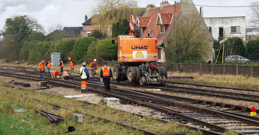 entre Eppeville et Ham (80) PK 58 de la ligne Amiens Laon, ce sont des remplacements de traverses en bois sur les appareils de voie,