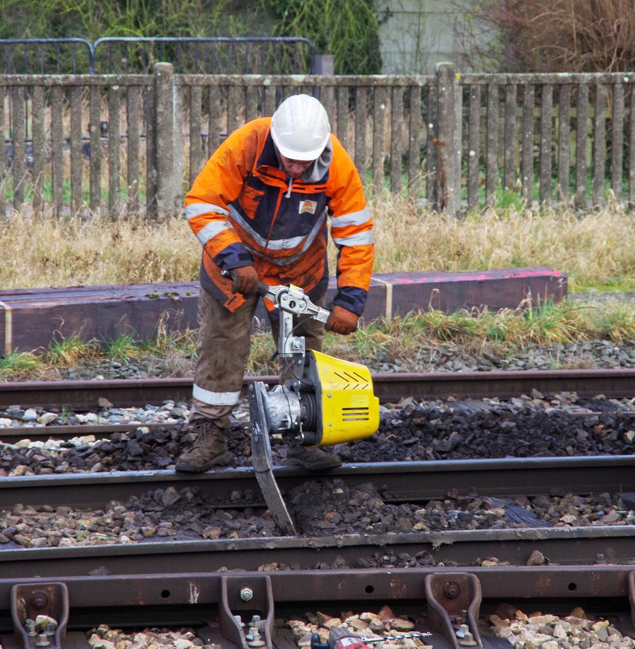 Je reviens sur la photo ou on trouve un VBZ de Geismar : Vibrateur portatif et autonome pour le bourrage de ballast dans les