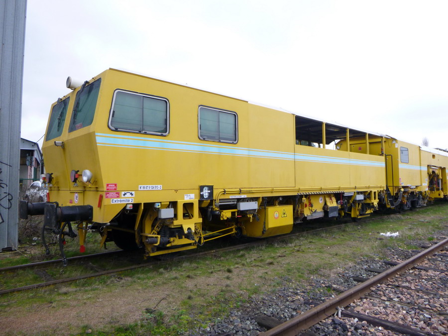 Voici la bourreuse Railmat ex MTF 99 87 9 124 513-2 Type 108 475 S garée à Saint Pierre des Corps sortie Ouest