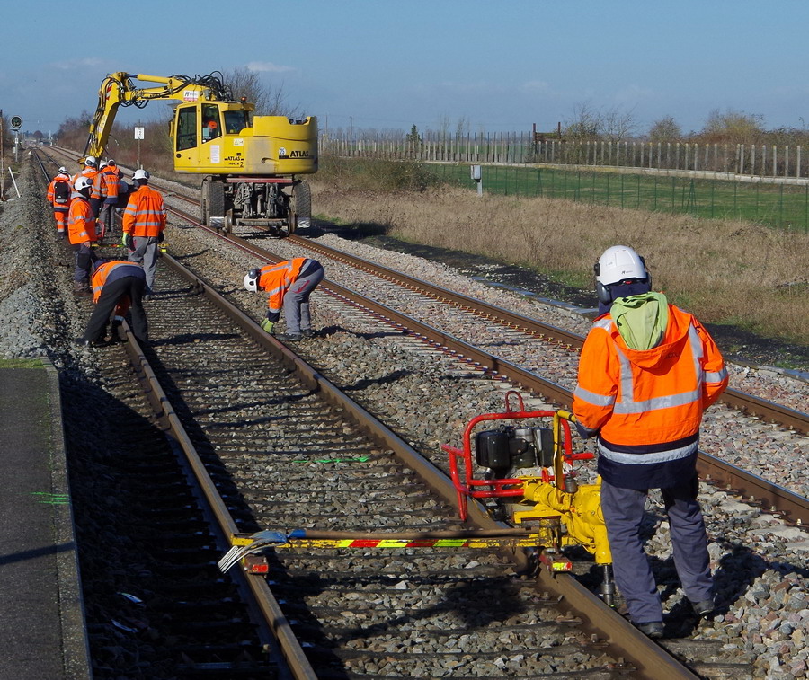 C'est pas fini on se retrouve en fin de journée du 11 février 2018 sur la bifurcation de Jussy (02) PK 70 entre les gares de Flavy-le-Martel et de Mennessis avec le traitement d'une zone boueuse par Colas Rail