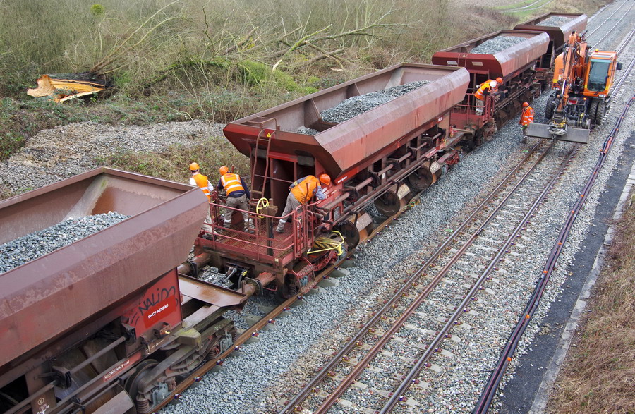 ballastage sur la zone de travaux entre la bifurcation et des Ponts de Bray à Jussy le15-02-2018
