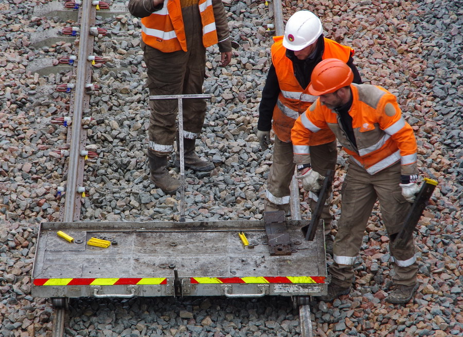 mise en place d'éclisses utilisées pour raccorder deux rails de profils différents à Jussy le 15-02-2018