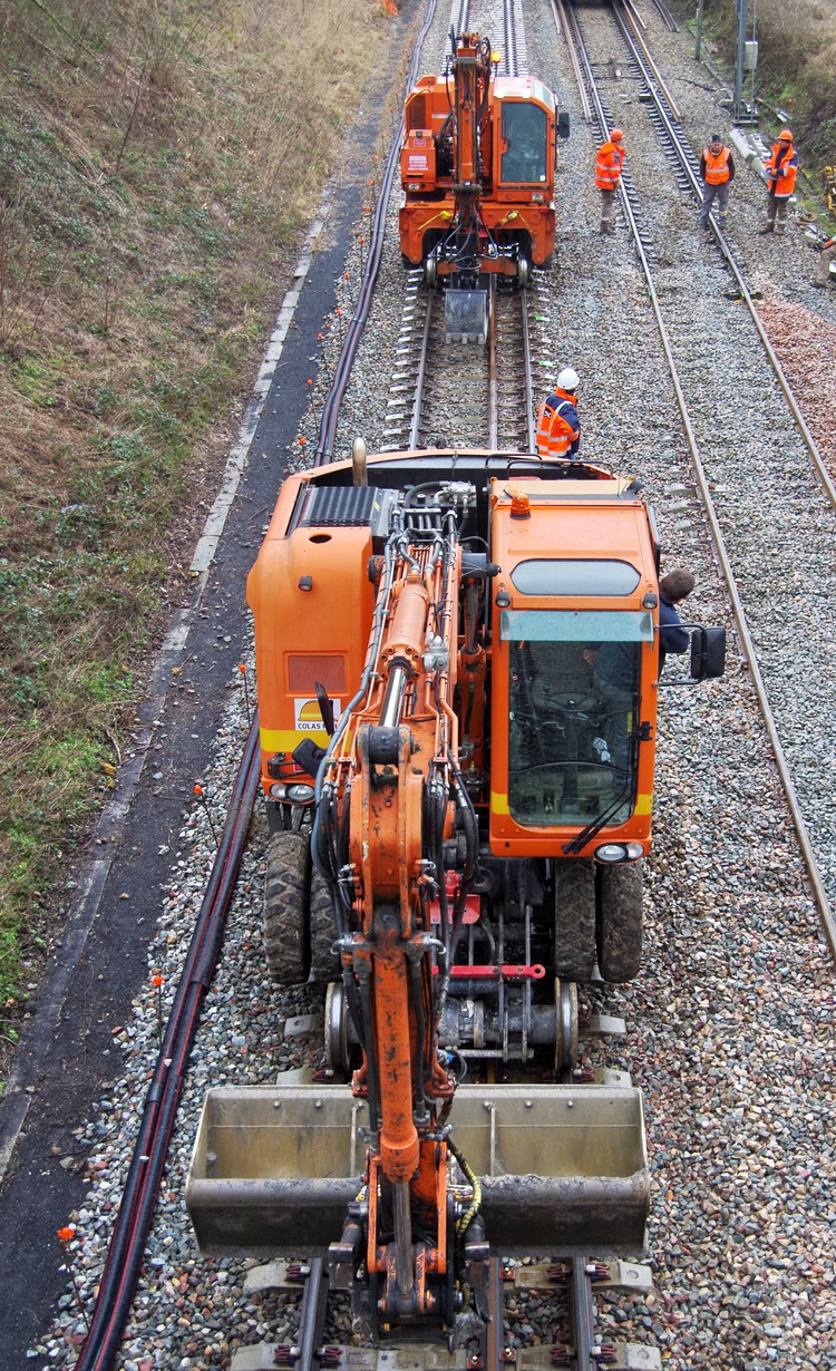 les deux Pelles Rail route UNAC 22 TRR et CASE 788 PRR de Colas Rail à Jussy le 15-02-2018