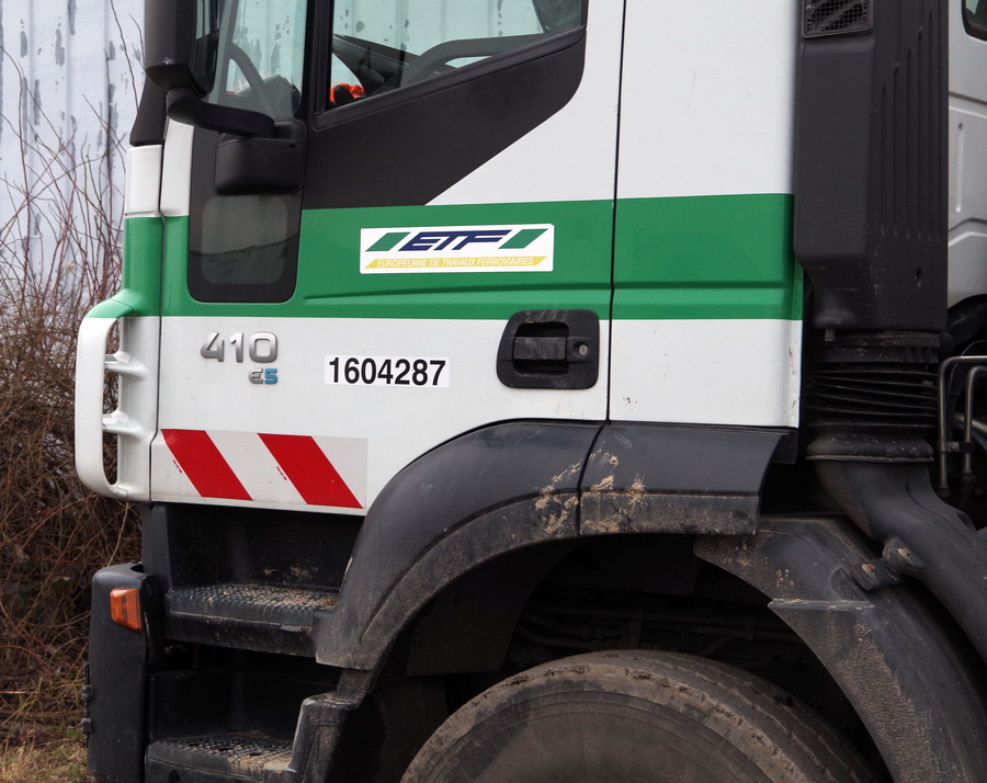 camion IVECO 410E5 TRAKKER - BK-501-LM (95) ETF 1604287 dans la cour de la gare de Chaulnes le 20-02-2018