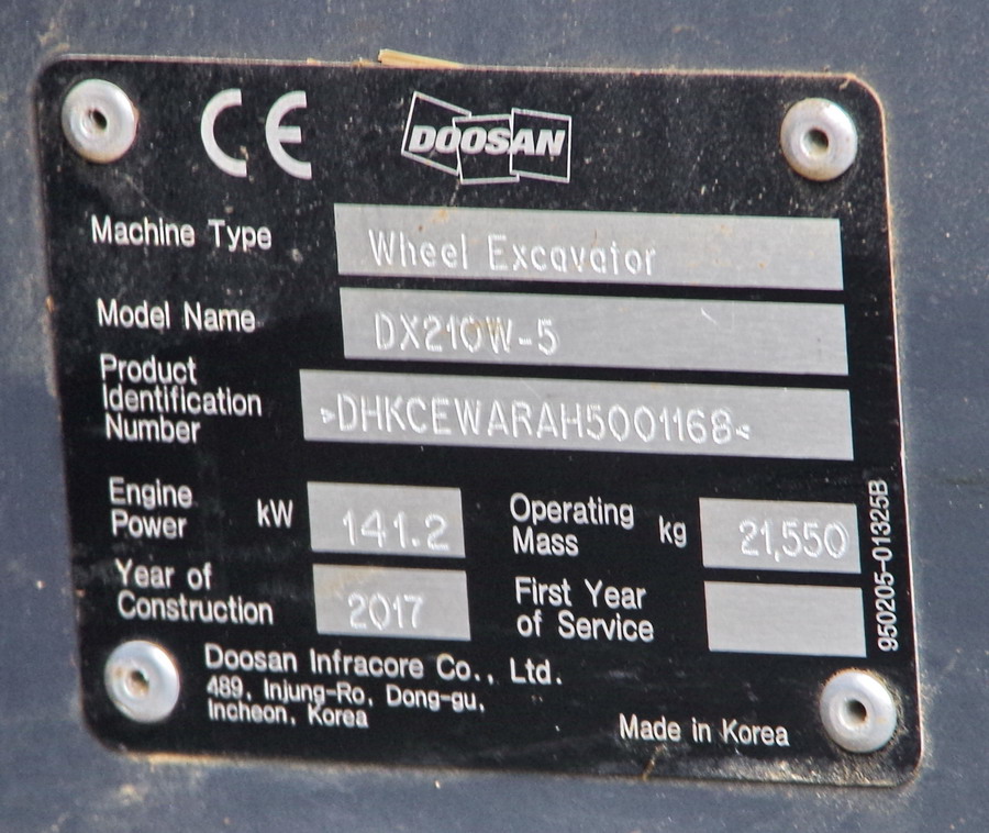 Pelle DOOSAN DX210W n°DHKCEWARAH5001168 - 2017 société de location SDC de Colnet (80) Gagny dans la cour de la gare de Chaulnes le 20-02-2018