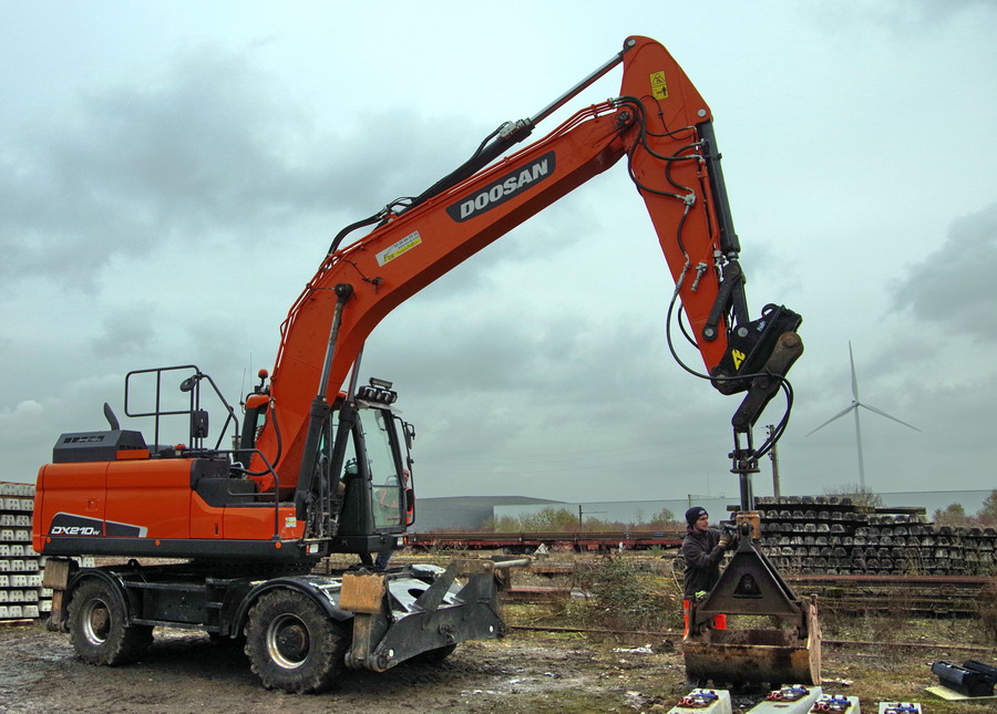 Pelle DOOSAN DX210W n°DHKCEWARAH5001168 - 2017 société de location SDC de Colnet (80) Gagny dans la cour de la gare de Chaulnes le 20-02-2018