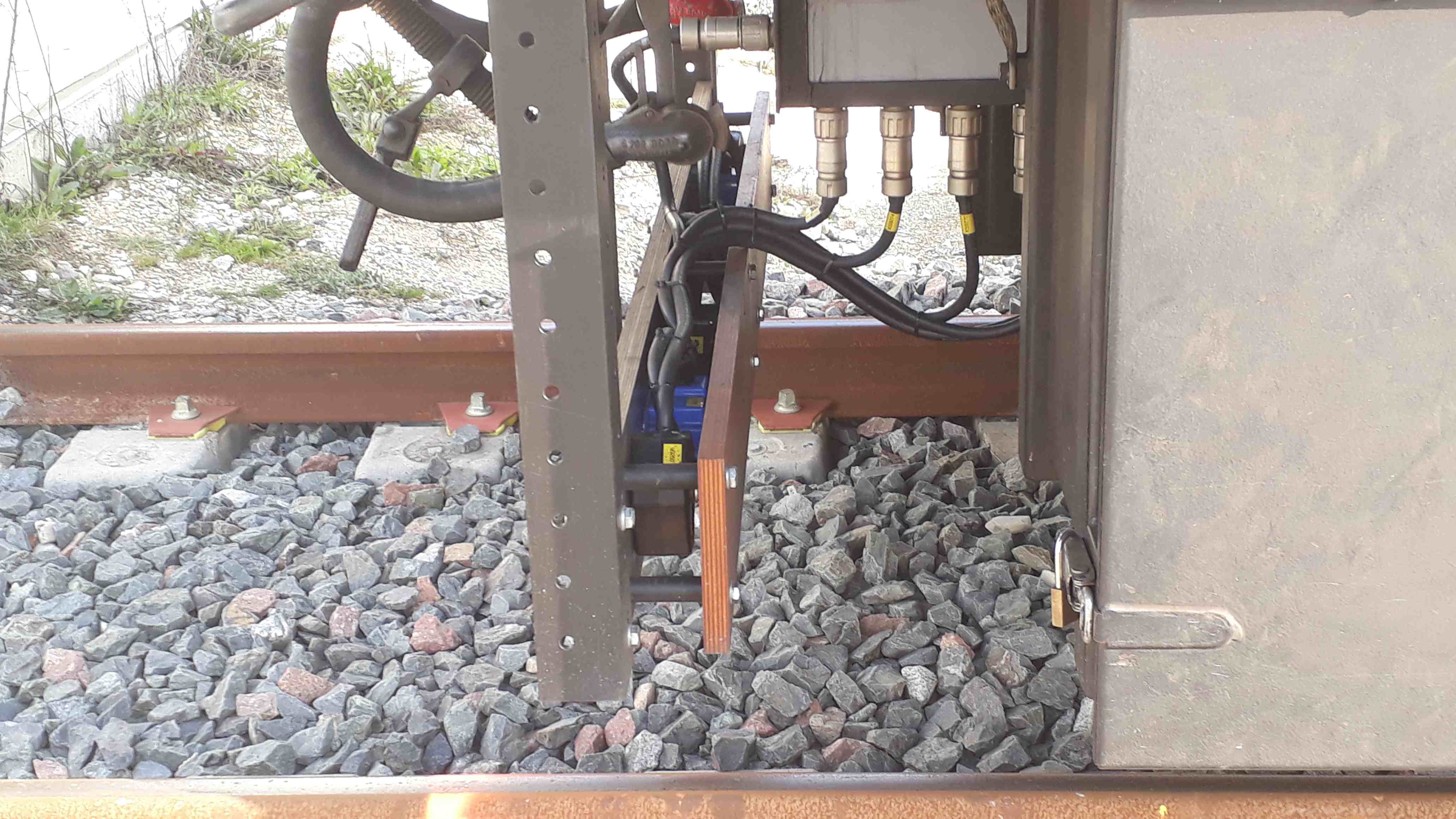Mesure du profil des champignons des deux fils de rails avant le travail de meulage.
