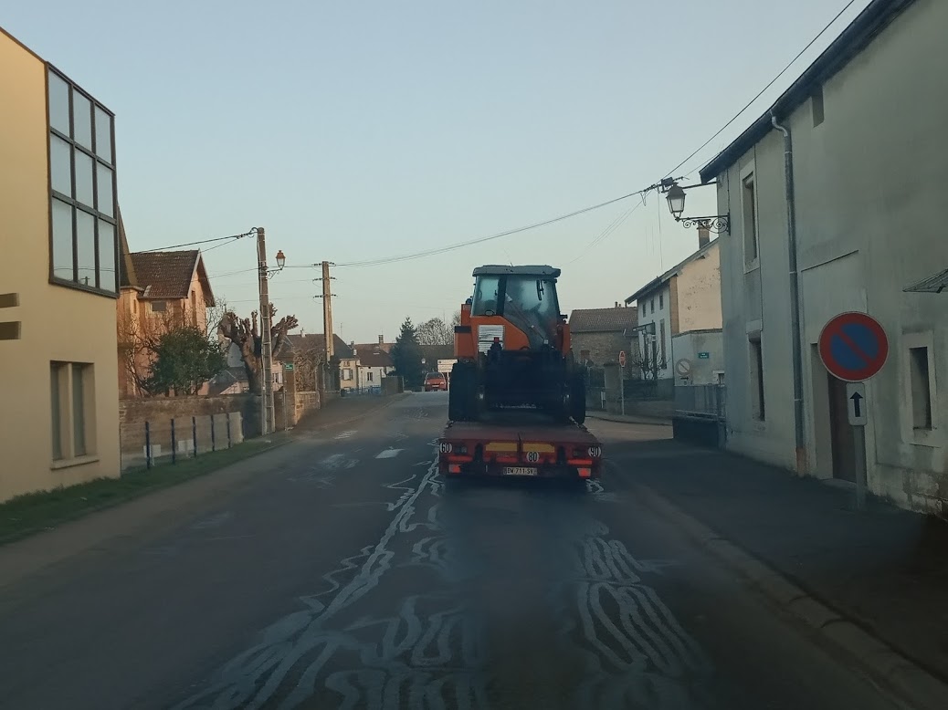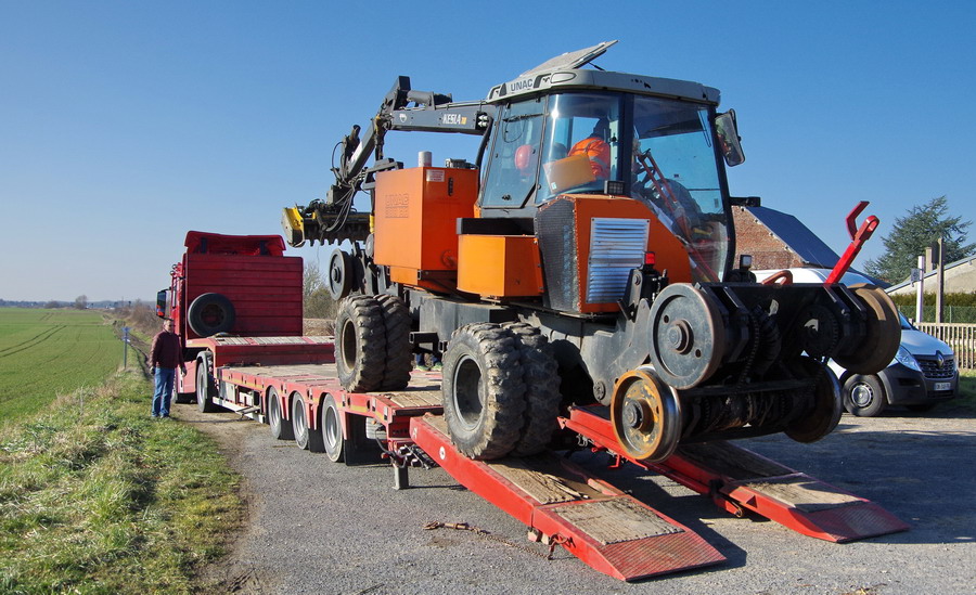 entre Jussy et Mennessis pour le chargement de la Débrousailleuse sur un plateau d'un camion SCANIA pour un nouveau chantier