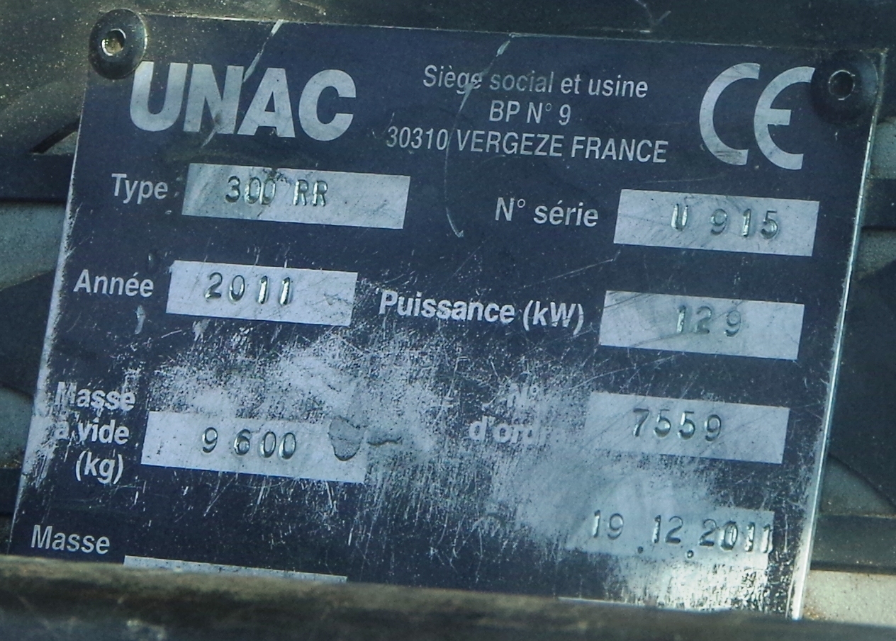 Re: UNAC 300 RR - U915 - SEFA Environnement U3