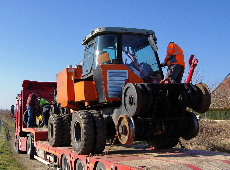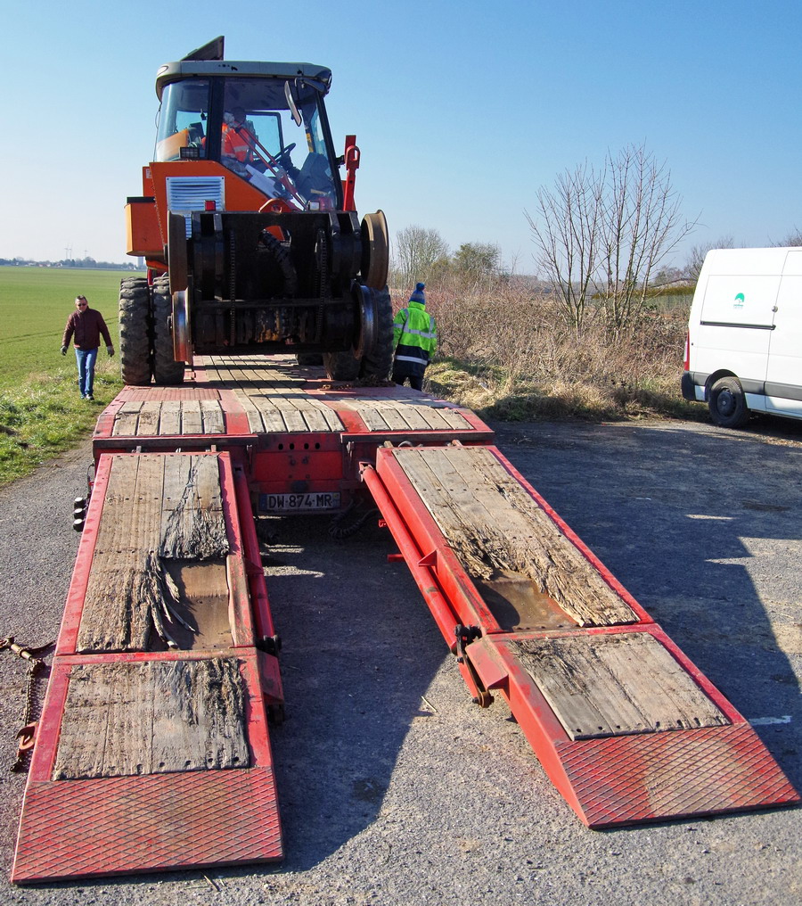 entre Jussy et Mennessis pour le chargement de la Débrousailleuse sur un plateau d'un camion SCANIA pour un nouveau chantier