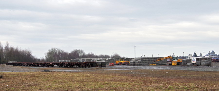 pour la préparation du chantier de pose des berlinoises, plaques de béton pour éviter les coulées de terre ou de boue