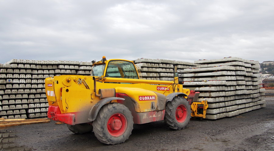 et utilisation aussi d'un chariot télescopique LOXAM pour le rangement du stock de traverses