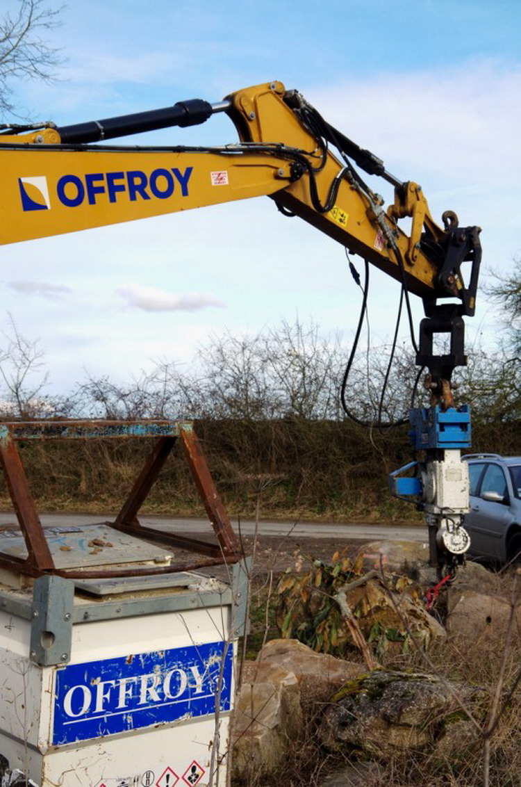 en voilà un installé sur la Pelle Rail route UNAC 22TRR n°H9A00139 d'Offroy NGE à Rouy-le-Petit PN n°32 le 05-03-2018