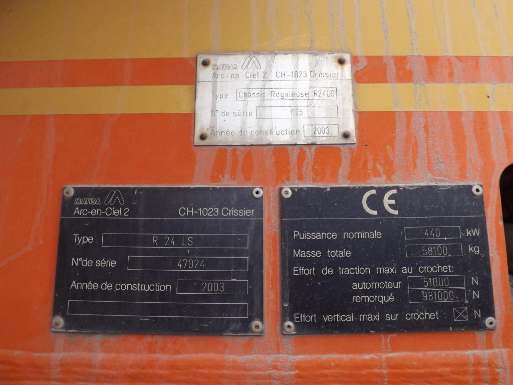 R24 LS n°47024 MATISA de 2003 Agrément de travail IEM 03062 - 07-01-2014 / 2017 - F 40000 15 avec TVM 430 - Tare 57,8 t - longueur 24,33 m