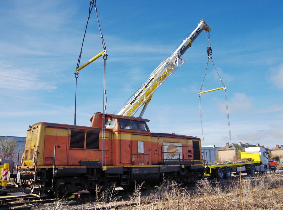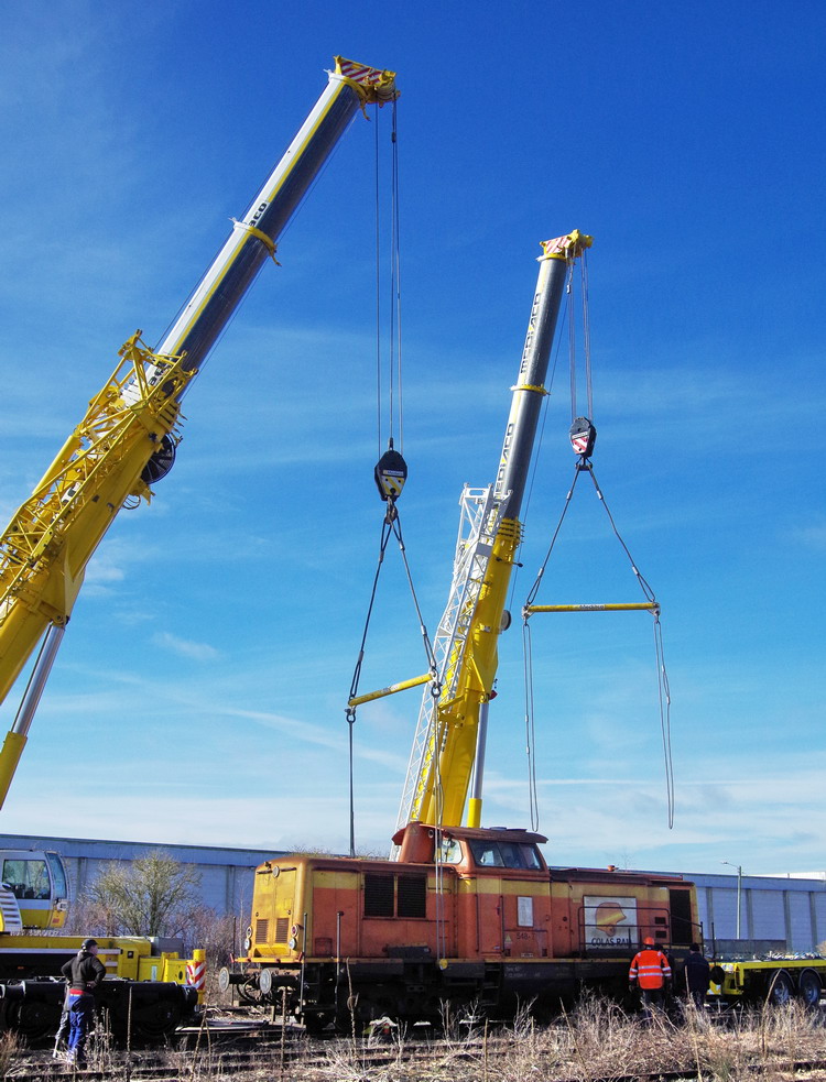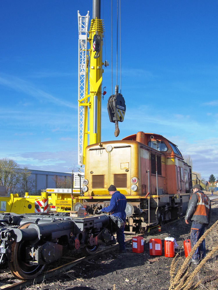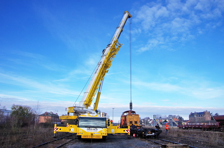 - une grue mobile LIEBHERR LTM 1100-4 de 100T pour le levage de la machine à Chaulnes le 06-03-2018