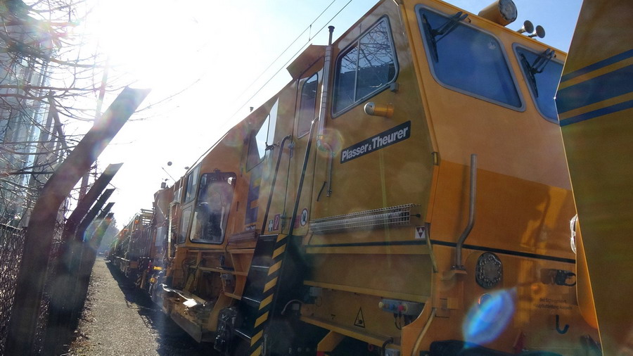 elle se trouve en gare de Saint Pölten en Autriche le 10-03-2018 avec la Bourreuse 09-4X E3 - 99 81 9123 015-2 - PLA