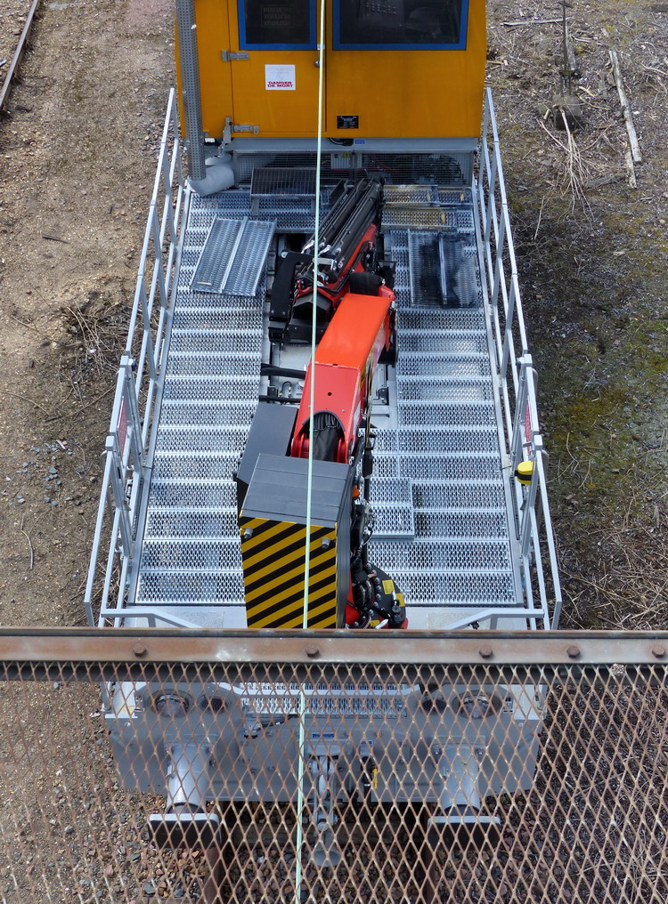Espérons que la grue n'a pas trop souffert, en effet l'extrémité des bras repliés était au dessus de l'incendie. Il y a tout plein de flexibles hydrauliques, de capteurs plus les plaquettes teflon pour les coulisses qui n'ont pas dû apprécier les flammes. On voit que la chaise de support de la grue est bien cramée.