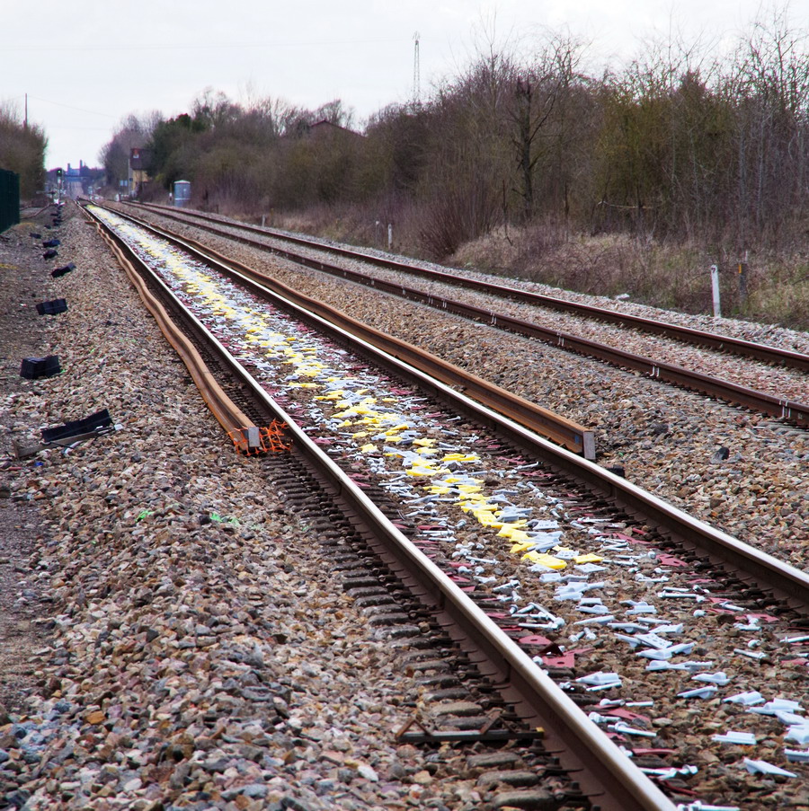 à Flavy-le-Martel (02) PK 67 + ou - avec la préparation du chantier RVB pour la pause des LRS entre le 9 avril et le 13 juillet avec le train-usine, qui traitera les 67 km de la voie 2