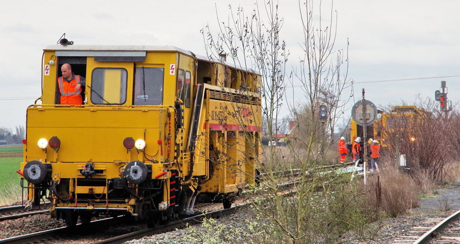 Voici la Bourreuse Meccoli "Les Inséparables" qui arrive de l'ouest pour le nord de Saint pierre des Corps le mardi 30-09-2014