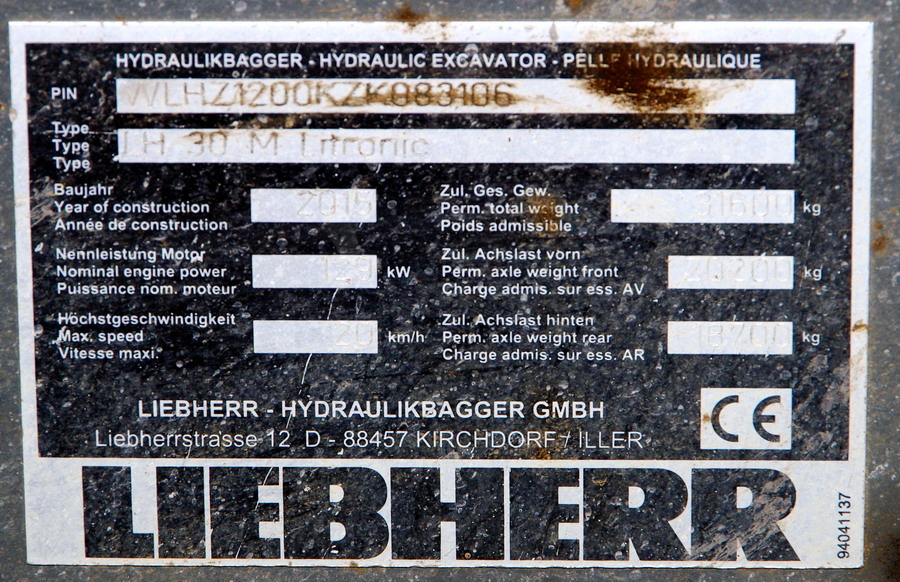 Pelle route LIEBHERR LH 30 Industry Litronic n°WLHZ1200KZK083106 de 2015