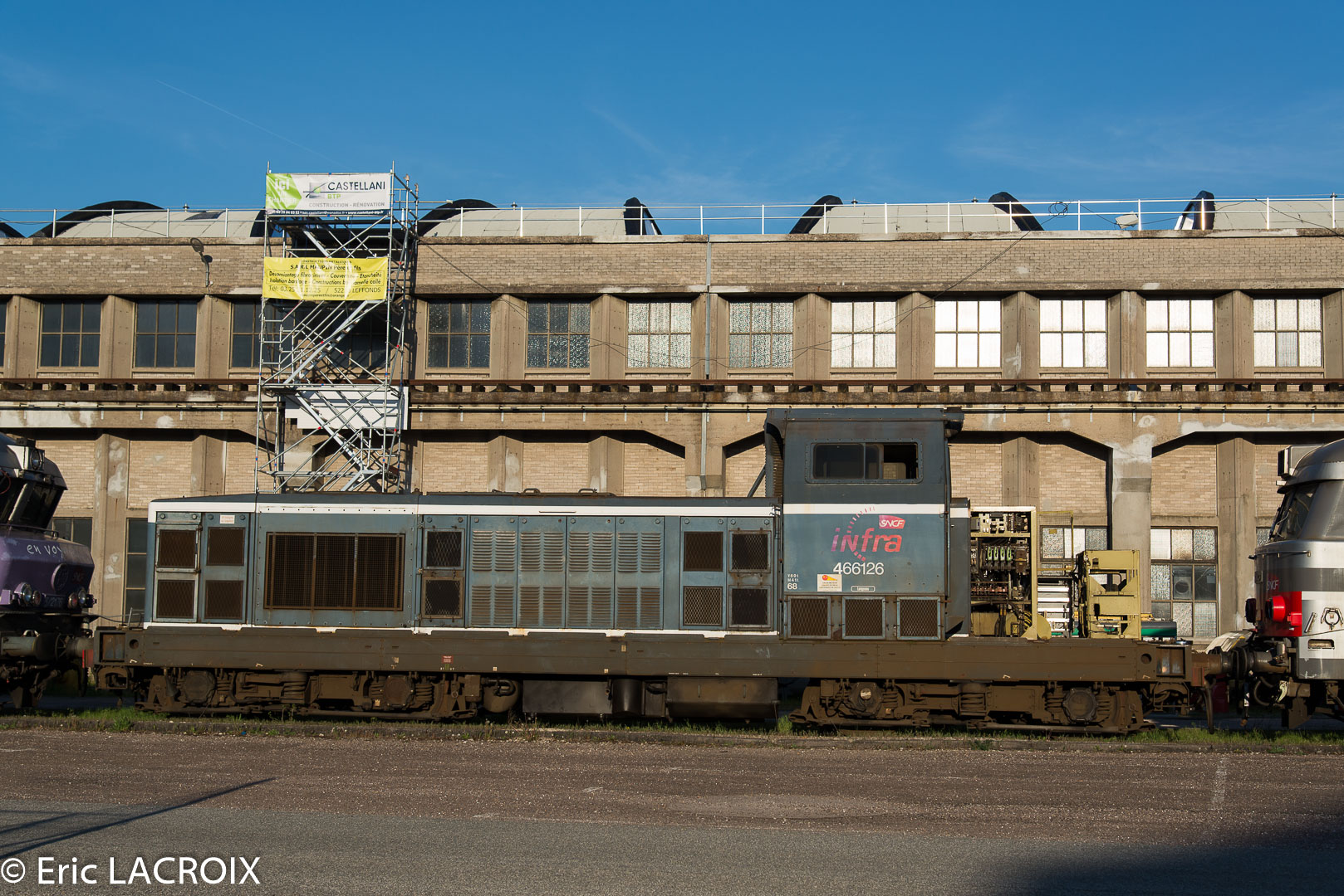 Voici la 466126 en livrée bleu avec le logo Infra et un marquage T1 - T2 ? dans le dépôt de St Pierre des Corps