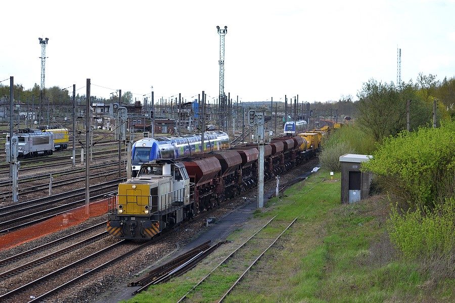 passage d'une rame de TTX du RVB à Tergnier avec une des deux G 1206 Meccoli