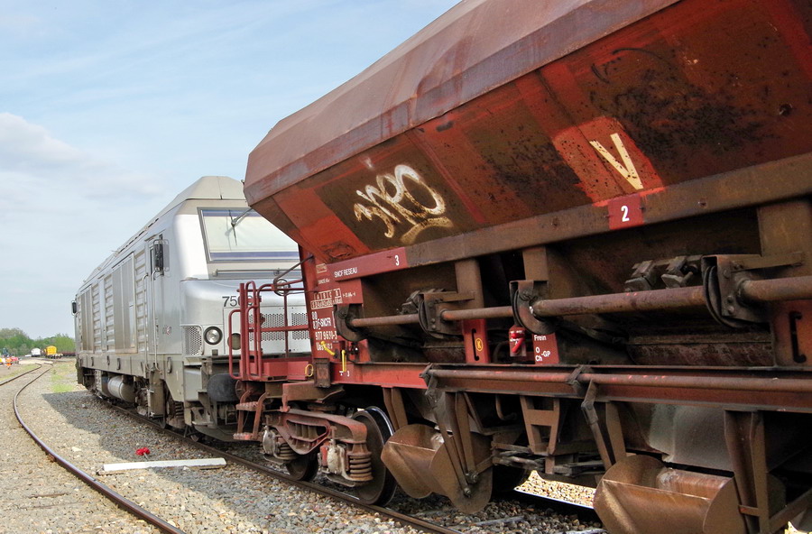 BB 75044 - 92 87 0075 044-3 F-AKIEM de retour sur la rame de la Dégarnisseuse à Laon le 24-04-2018