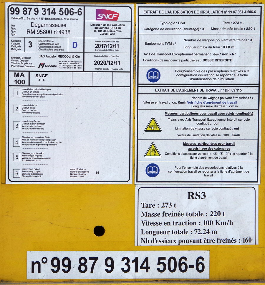 Dégarnisseuse RM 95-800 n°4938 - 99 87 9 314 506-6 Meccoli retour à Laon le 24-04-2018