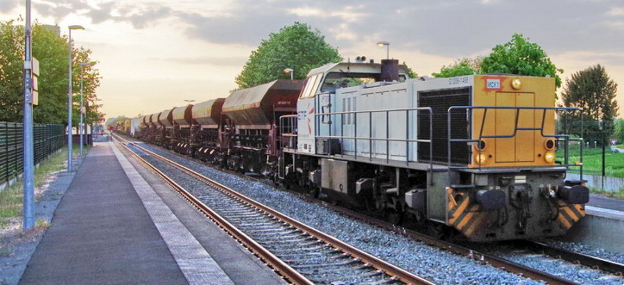 La voici de passage en gare de Flavy-le-Martel (02) vers 19h00 avec le soleil couchant PK 67,883 de la ligne d'Amiens à Laon