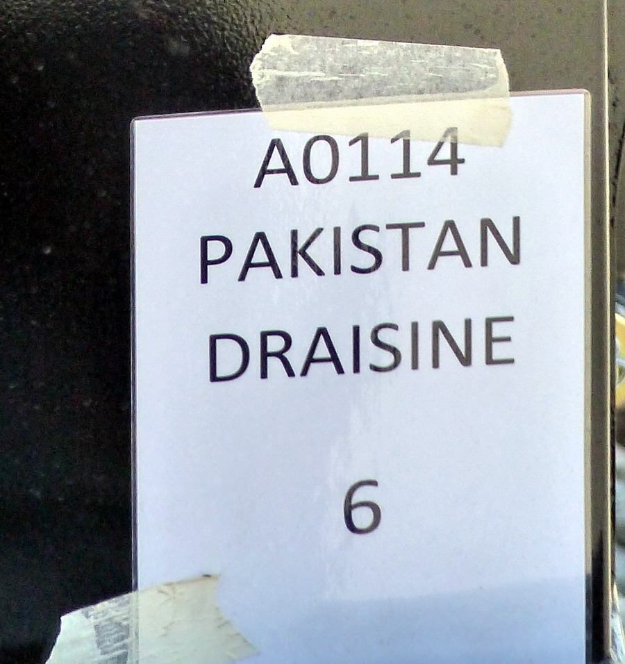 Une des draisines pour le Pakistan Railways sortant de fabrication des ateliers de la Socofer à Saint Pierre des Corps en photos la n°6 série A0114 avec essieux pour voie large 1676 mm ce qui explique les bogies pour déplacer sur voie normale