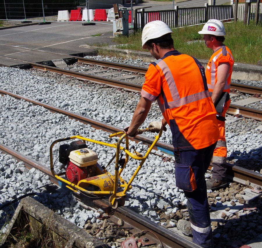 Suite des travaux à Jussy (02) le mardi 08 mai 2018 au niveau de la jonction des LRS et des anciennes rails avec le passage d'une