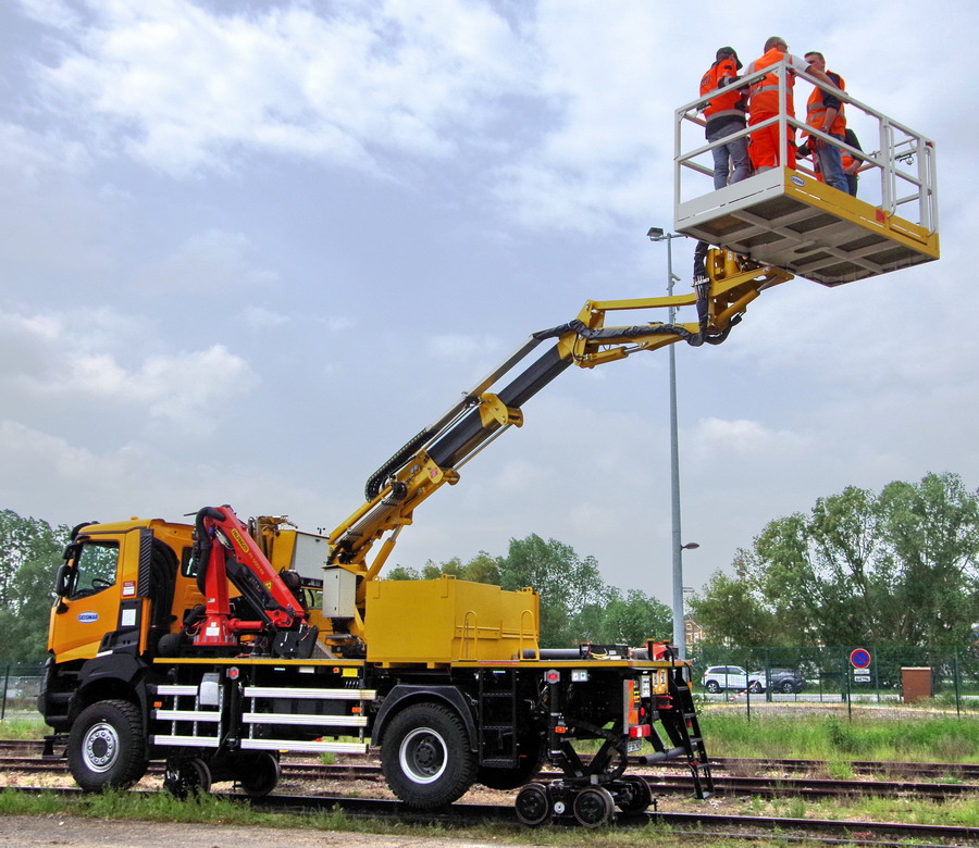 avec une démonstration de la nacelle et le désenrayage du camion Rail route