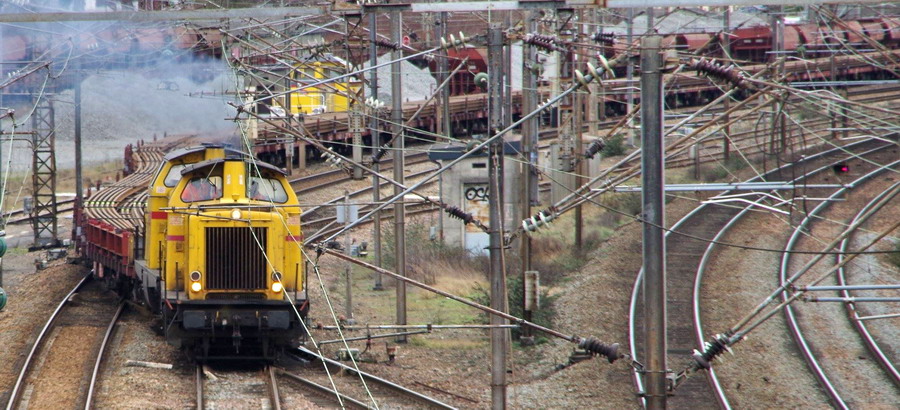 La voici sur une rame de TTX avec la 99 87 9 182 591-1 V212 380-0 "Vincent" sur la base de travaux de la gare de Laon
