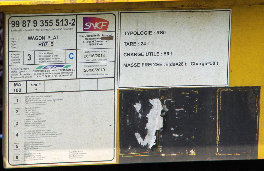 R87-5 - 99 87 9 355 513-2 - ETF sur la rame du P95 ETF gare de Ham (80) le 09-04-2018