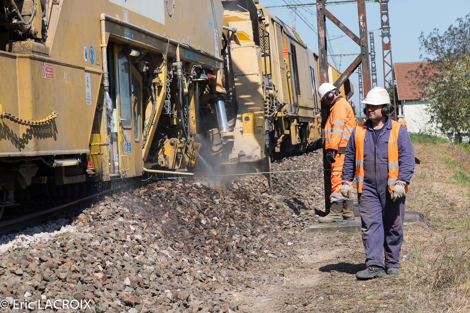 Dégarnisseuse Cribleuse Matisa C-75 - 99 87 9 314 507-4 GCF Roma sur le RVB voie 1 bis à Courtois sur Yonne (89) en avril 2017.