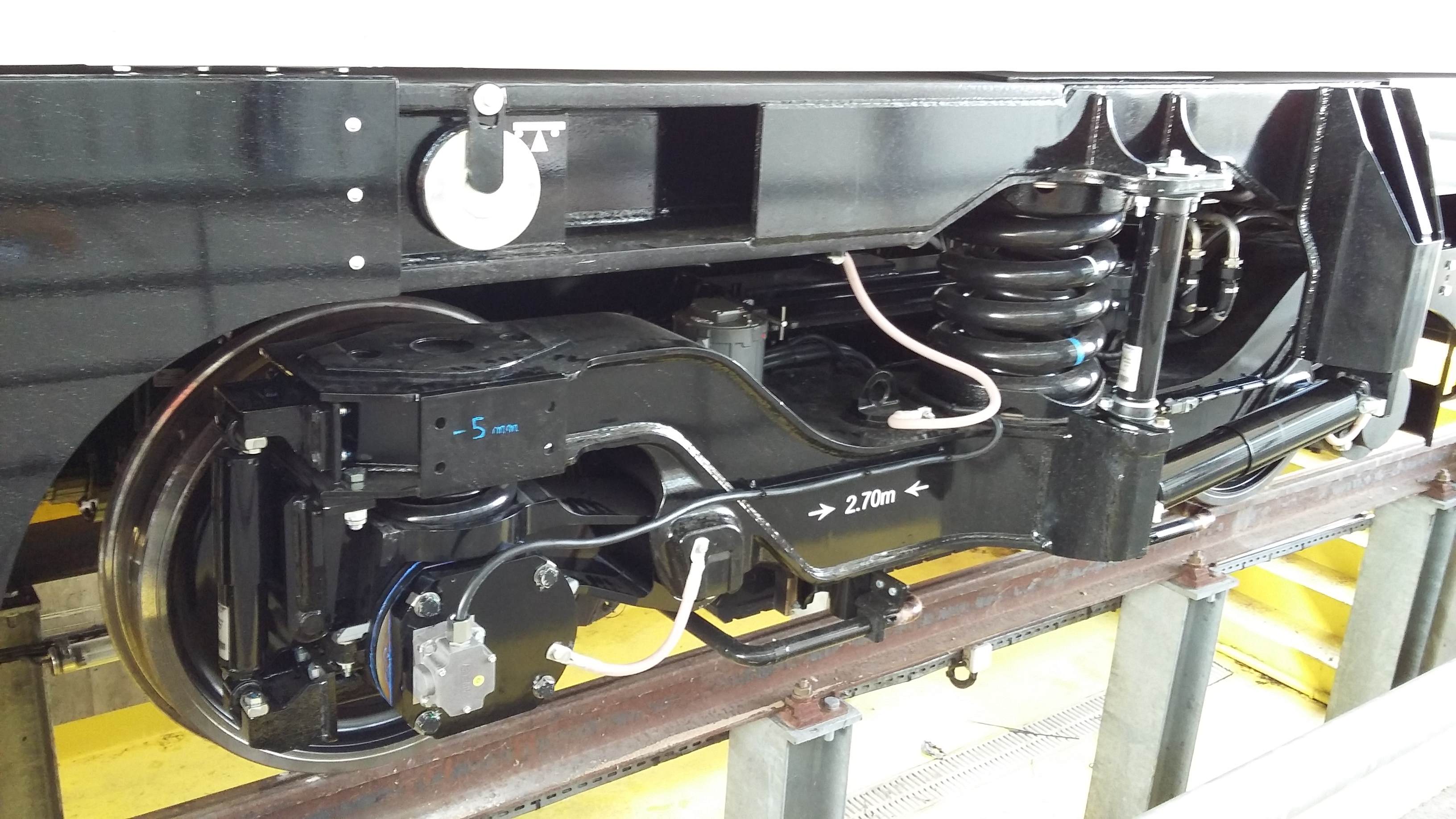 l'AEF a installé son lot de capteurs avec des câbles qui cheminent un peu partout. Pour les essais de freinage une installation qui crache de l'eau à savonneuse pour être dans les conditions d'adhérence rail-roue les plus défavorables.