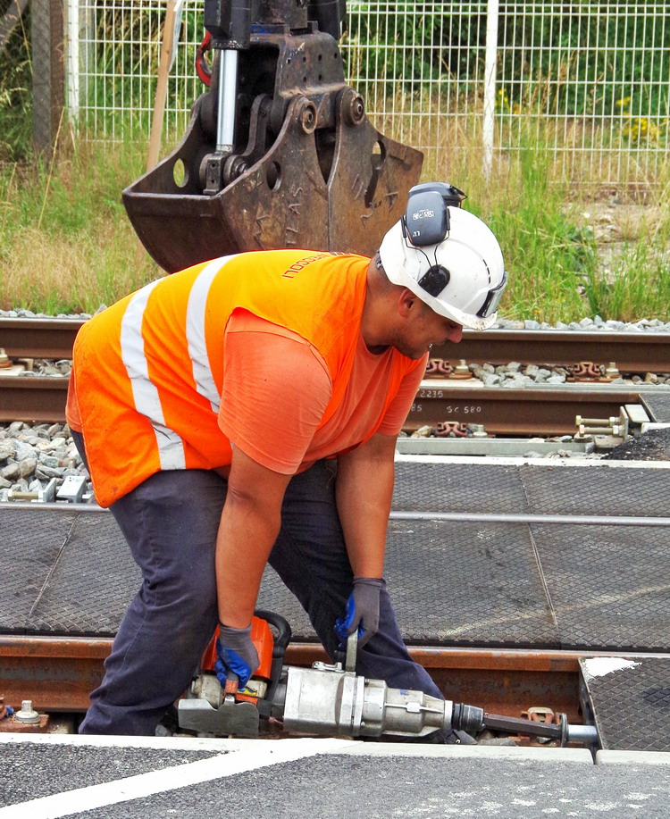 Boulonneuse portative Geismar MW 3 pour les mise en place des tirants pour les dalles STRAIL au PN n°36 d'Eppeville le 11-06-2018