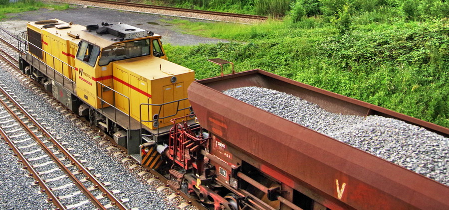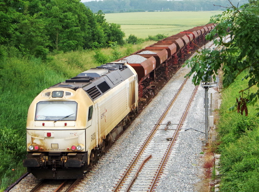 retour du train n°T1T2 rame de tombereaux avec la Euro 4022 de VFLI gare de Mennessis le 14-06-2018