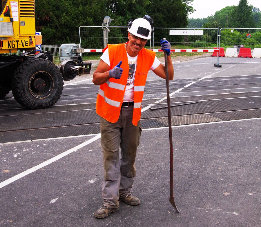 d'un rail neuf présentant un défaut par un autre rail neuf d'une longueur de 36 mètres avec utilisation d'une Pelle Rail route
