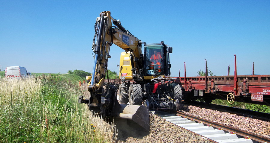 utilisation d'une Pelle rail route Vaiacar V704FR+ n°0610V7029 - Meccoli 2 (RR5) pour retirer les coupons de 18 m à Blangy-Tronville le 27-06-2018