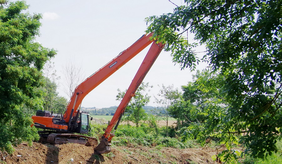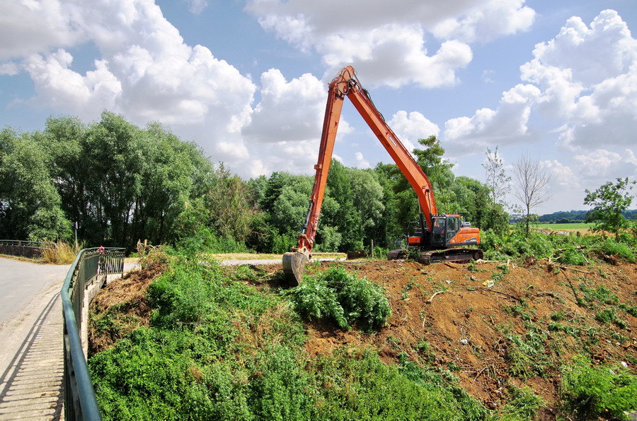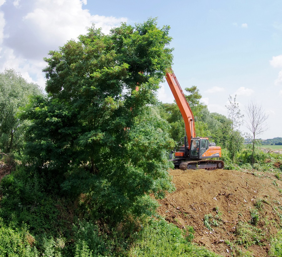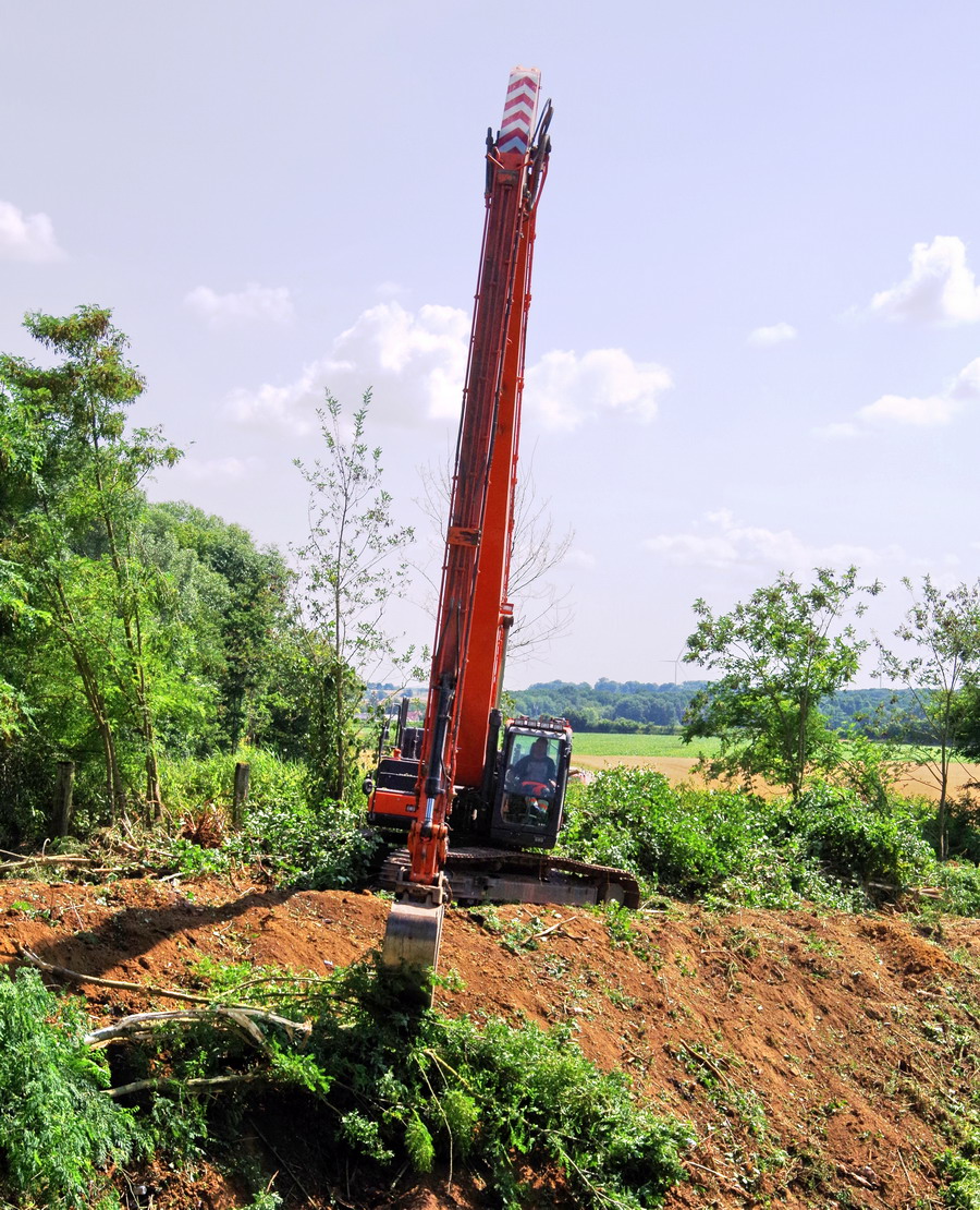 nettoyage des talus avec la DOOSAN Crawler Excavator DX300LC - 5 au niveau des Ponts de Bray à Jussy (02)