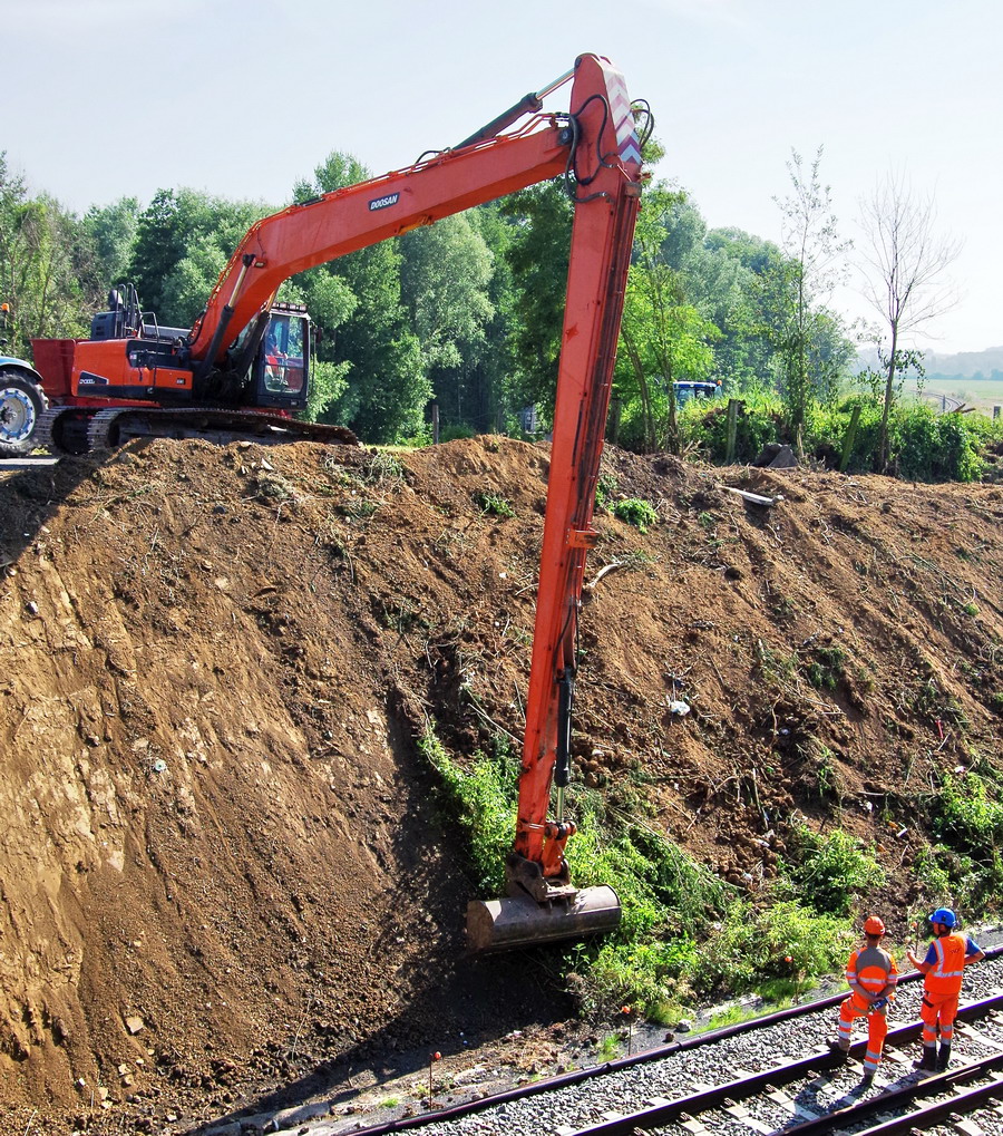 des talus avec l'entreprise Christophe Beaussire avec la Pelle à chenilles DOOSAN Crawler Excavator DX300LC - 5