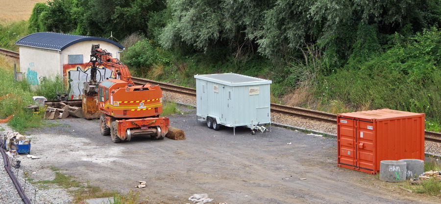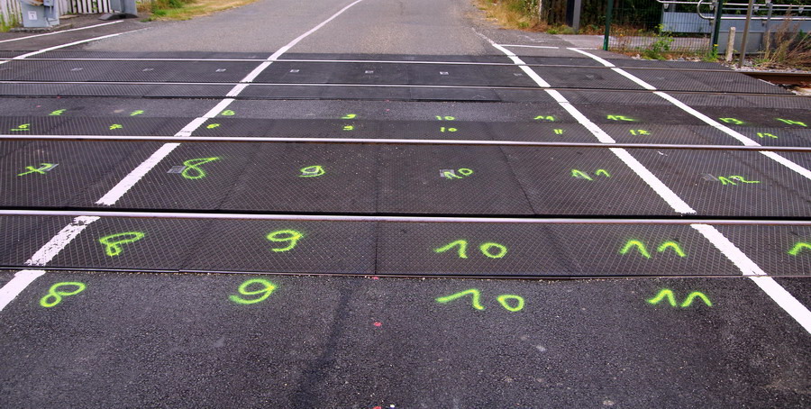 et maintenant quelques photos du mercredi 11 juillet 2018 au PN de la gare de Rosières-en-Santerre avec le nouveau marquage sur la voie 2