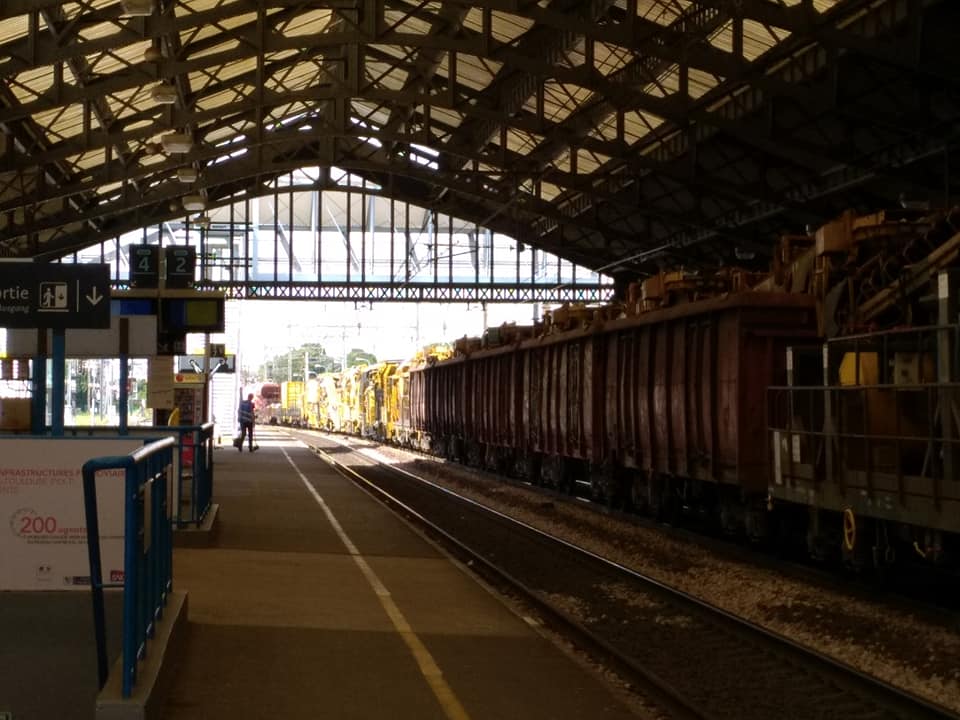 et ce matin mercredi 18 juillet 2018 arrivé en gare de Blois (41) sur la voie 1 du train avec la Dégarnisseuse RM 95-800 AHM 99 87 9 314 506-6 Meccoli