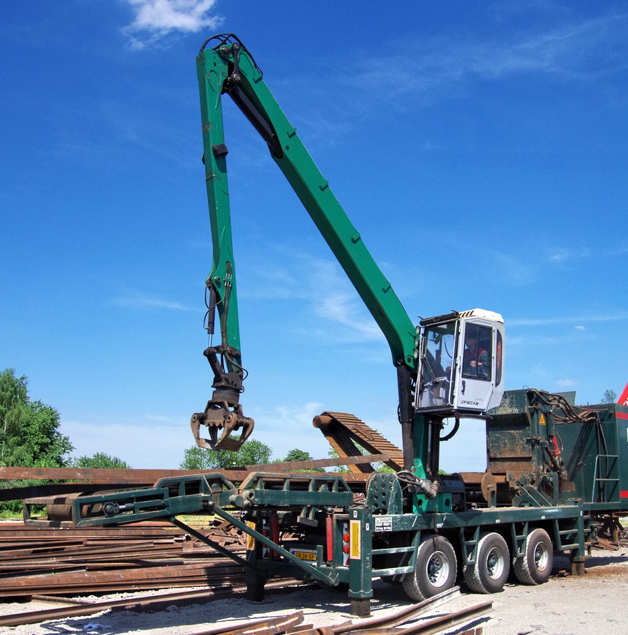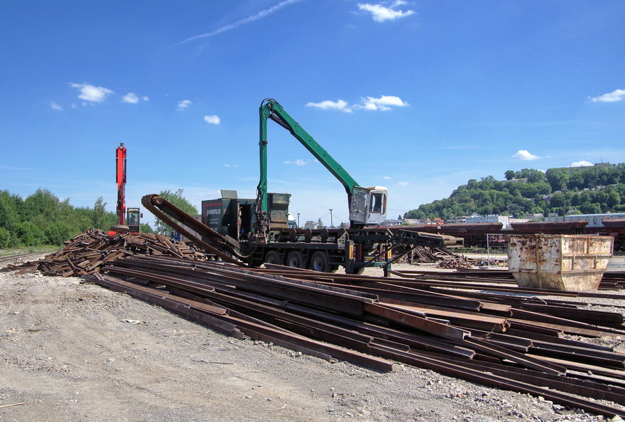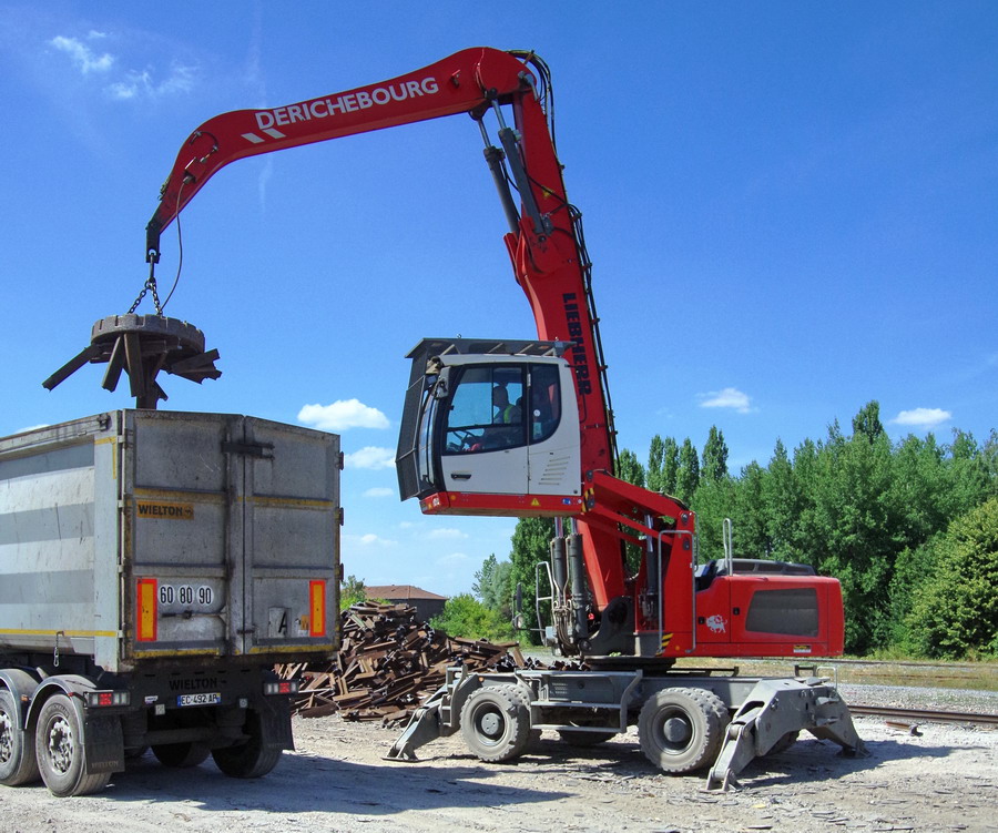 puis chargement dans le camion par une grue LIEBHERR LH30 de Derichebourg à Laon le 19-07-2018