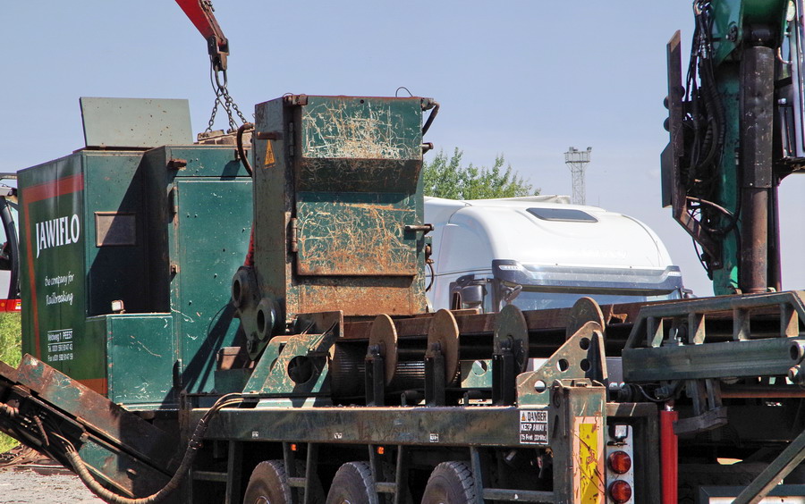 Jawiflo a commencé avec le traitement des rails au moyen d'une grue mobile avec un cisaillement. Ce fut, cependant, une grande déception, parce que les cisailles de rail étaient plus souvent dans l'atelier qu'il travaillait, ayant pour résultat trop peu de tonnage. Donc, ce n'était pas le cas, alors M. Kemp a plongé dans l'atelier et a commencé à développer et construire un brise-roche.