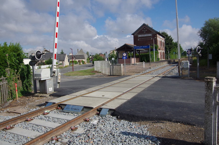 et maintenant le PN n°82 de la gare de Verneuil-sur-Serre PK 149,718 avec un passage routier avec des plaques de la Société STRAIL