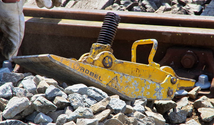 relève-voie ROBEL pour retirer la vieille traverse en gare de Marle-sur-Serre PK 164,043 le 16-07-2018
