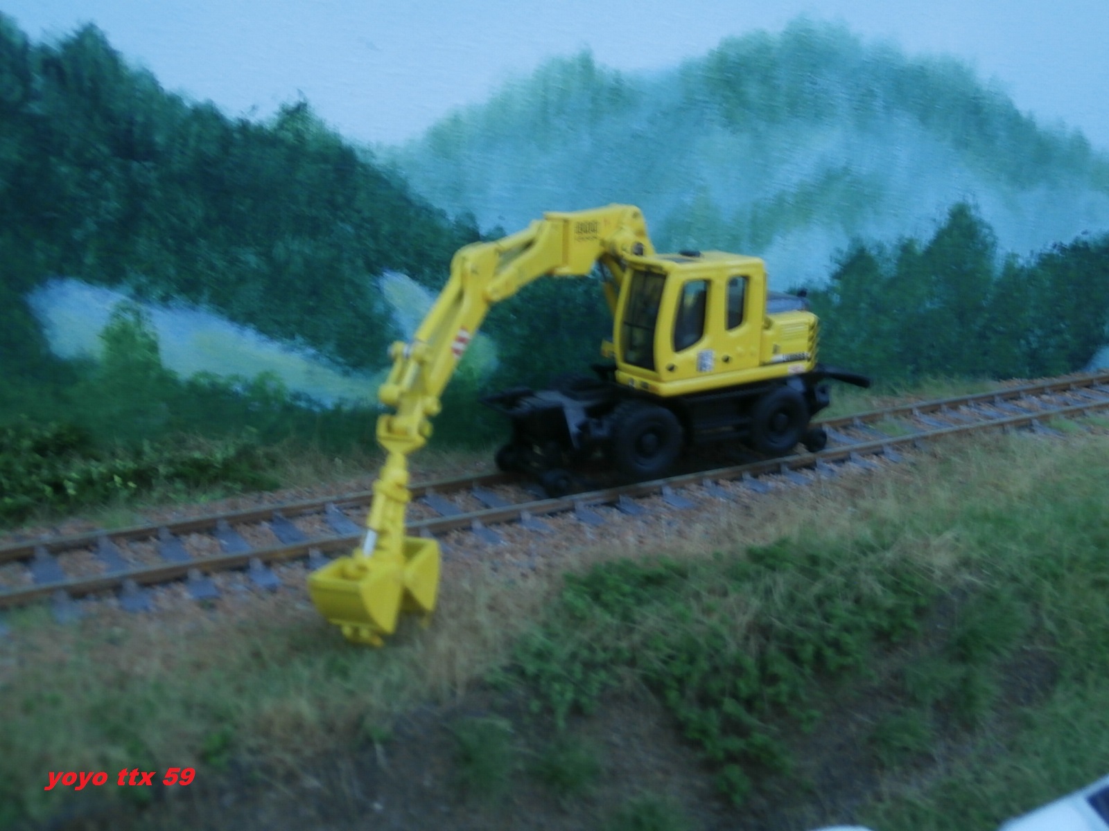 Voici la pelle rail route qui attend sagement la rame de récupération des panneaux de voie :siffle: :
